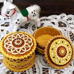 商品紹介: まるでケーキのような可愛いデザインのべレスタ。繊細にカットされた白樺を何層にも重ね生まれた小物入れ。