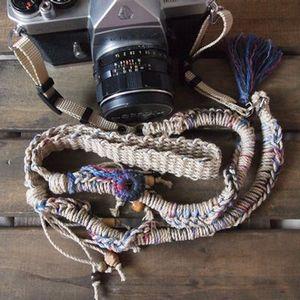 商品紹介: 手染めの段染めヘンプを編み込んだ手作り1点物の麻紐ヘンプカメラストラップです。