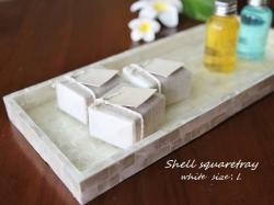 商品紹介: スクエアカットした真珠貝を貼りあわせ、樹脂でコーティングしたシェルスクエアトレイ L(ホワイト)。