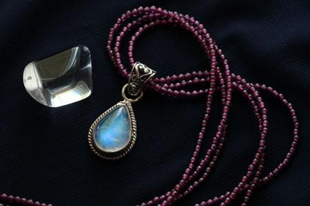 商品紹介: ☆神秘的な輝きを放つホワイトラブラドライトをトップに、ガーネット3連を繋いだ新作SVネックレスです。ペンダントを外して、ガーネットのネックレスとしてもOKな2WAYタイプです。