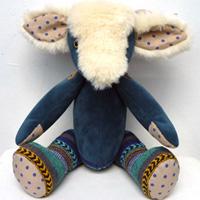 商品紹介: 半人半獣の悪魔、バフォメットをモチーフにしたテディゴートです。ブラウンダークブルーのスウェードとメキシカン生地です。角、足手裏は水玉のドット生地です。一点物のハンドメイドです。生地を選んで頂くセミオーダーも受付致します。お気軽にお問い合わせください。