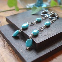 商品紹介: 夏にピッタリのターコイズを使ったロングタイプのイヤリング。