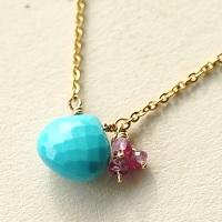 商品紹介: カットがとても美しいターコイズとピンクサファイアの14kgf一粒ネックレスです。¥3200