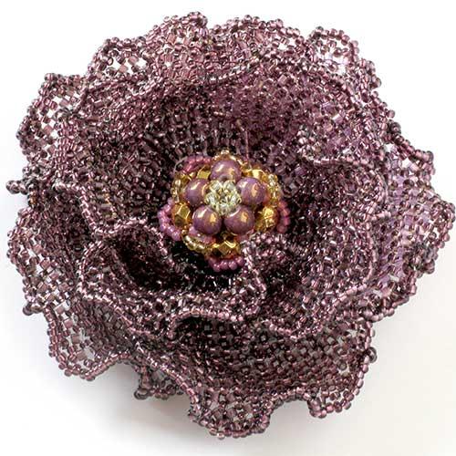 ワインレッドのひらひらビーズコサージュ