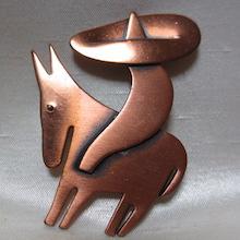 銅製、ロバにソンブレロ(山高帽)の人が乗ったブローチです。モチーフを簡略化したユニークなデザイン、微笑ましい雰囲気です。1940年代製。