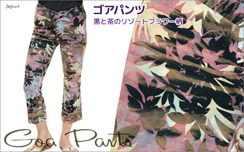 ゴアパンツ七分丈(パープルに黒と茶のリゾートフラワー柄)