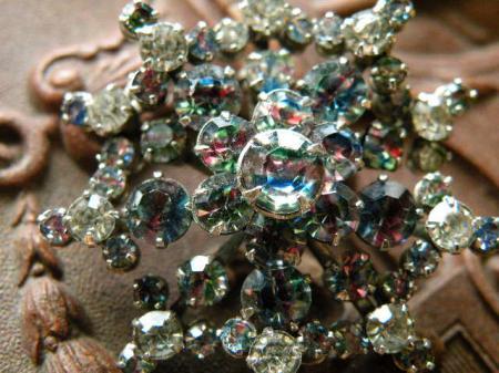 ヴィンテージ アイリスカラー ラインストーン お花型ブローチ