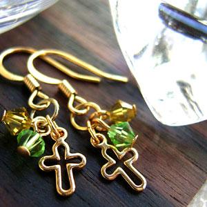 商品紹介: 小さなクロスとスワロフスキービーズのピアスです。