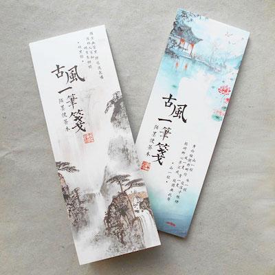 商品紹介: 中国的でとても風流な風景が描かれた、一筆箋です。水墨画のような「竹里館」と、蓮や金魚などの「山一程」の2種類あります。縦15.5×横5.5×厚さ0.5cm