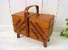 ポーランド製・脚付き・木製アンティーク・ソーイングボックス